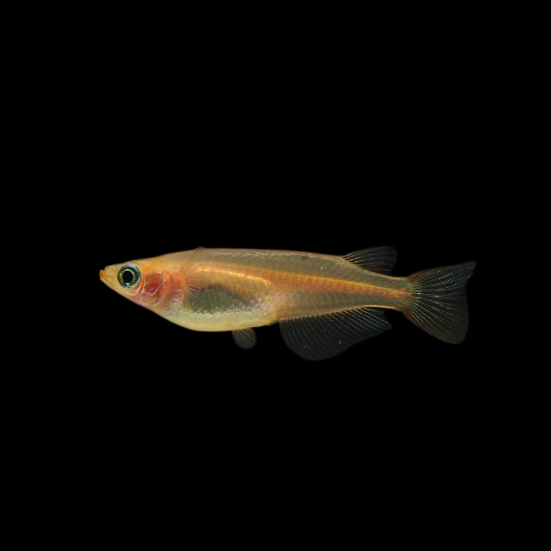 日本原産のメダカの改良品種(緋色変異個体)です。飼育・繁殖が容易で世代交代が早く、透明な卵を通して発生過程を観察しやすいことから、小学校の理科教育から、大学・研究機関における発生生物学、遺伝学、環境毒性試験(OECDテストガイドライン等)まで、幅広い分野でモデル生物として利用されています。